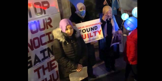 İngiltere’nin başkenti Londra’daki Uygur Halk Mahkemesi’nin, Çin’in Uygur Türkleri ve diğer etnik azınlıklara karşı soykırım uyguladığına hükmetmesinin ardından Çin Büyükelçiliği önünde gösteri düzenlendi.